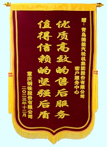 “優(yōu)質(zhì)高效的售后服務(wù),值得信賴(lài)的堅強后盾?!苯?,用戶(hù)重慶鋼鐵股份有限公司給捷能集團公司送來(lái)錦旗,誠摯表達了對K1890-24#機組轉子及時(shí)修復并順利投產(chǎn)運行的感謝。